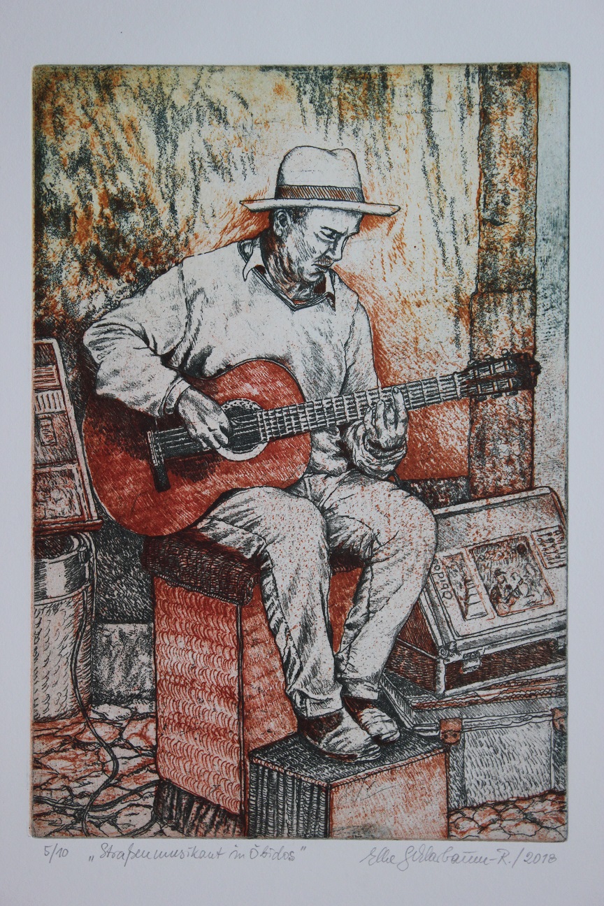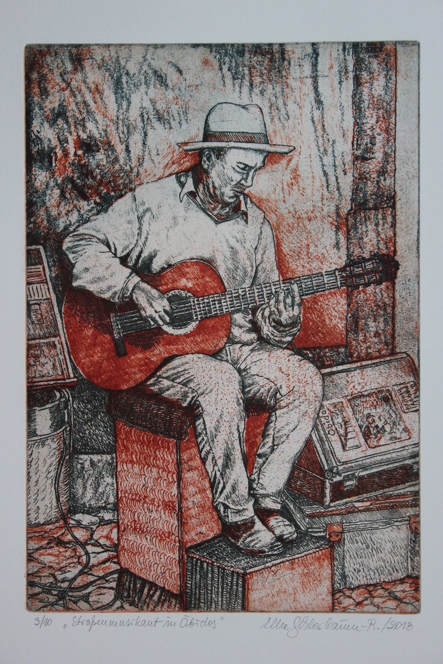 Elke Schlarbaum-Riede / Farbradierungen zur Serie: Straßenmusikanten