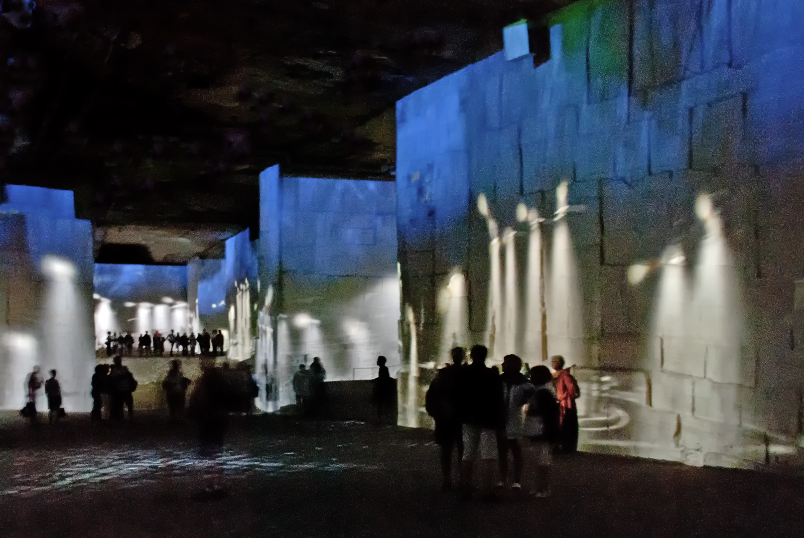 Die Gemälde wurden gleichzeitig auf sämtliche Wände und Fußböden projiziert und bewegten sich im Rhythmus der Begleitmusik.